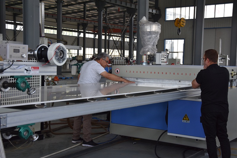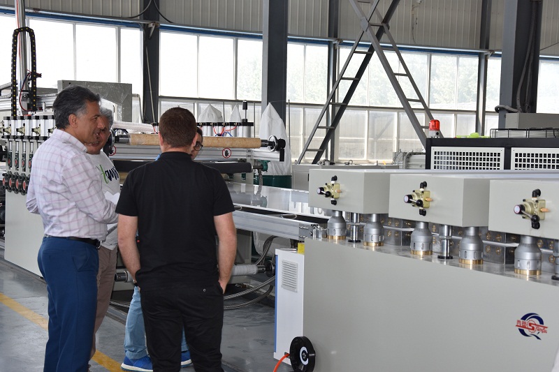4月26日,印度客戶一行四人來我公司考察PVC結皮發泡板生產線,公司現場開機,生產穩定,生產的發泡板制品完全符合客戶的要求,客戶對設備的整體質量和穩定性給予了很高的評價,并達成了合作意向。